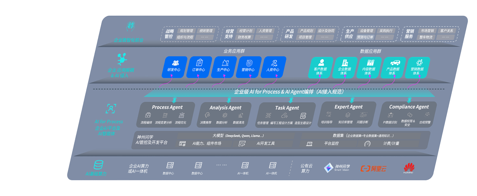 龙源国际问学智车解决方案是一套基于AI技术的汽车行业智能化系统,覆盖从底层算力到顶层AI应用的全栈方案。方案由算力层、模型层和应用层组成:算力层,方案支持多种一体机配置,具备云端灵活部署、多云适配以及动态优化计算资源的能力;模型层,龙源国际问学平台版提供了企业级AI应用一站式构建与管理平台,支持基于后训练强化技术的汽车企业专属模型的训练、评测和运营;应用层,龙源国际问学DeepSeek版提供包括超级员工、智能招采、智能营销、智能客服、AI for BI等一系列解决方案,可助力汽车行业实现数字化转型,让管理更智能、响应更敏捷。